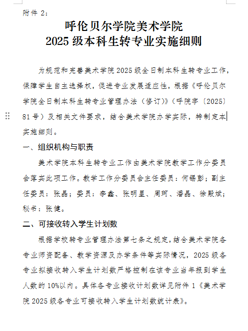 为规范和完善美术学院2025级全日制本科生转专业工作,保 ...